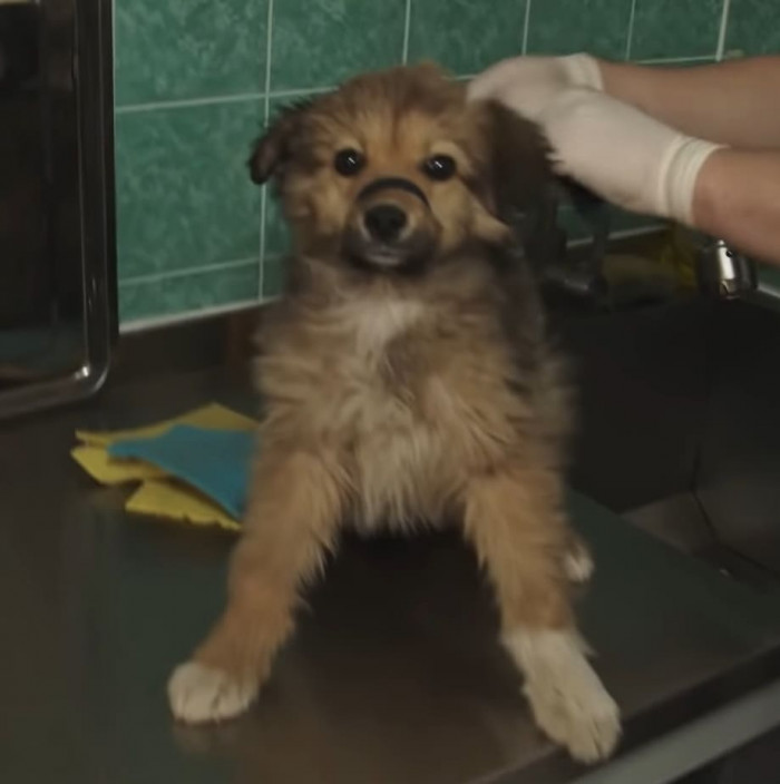 Eventually, they were able to get Pushok out, and they took him straight to the vet for assessment. He was covered in fleas and ticks, which needed to be removed by the veterinarians.
