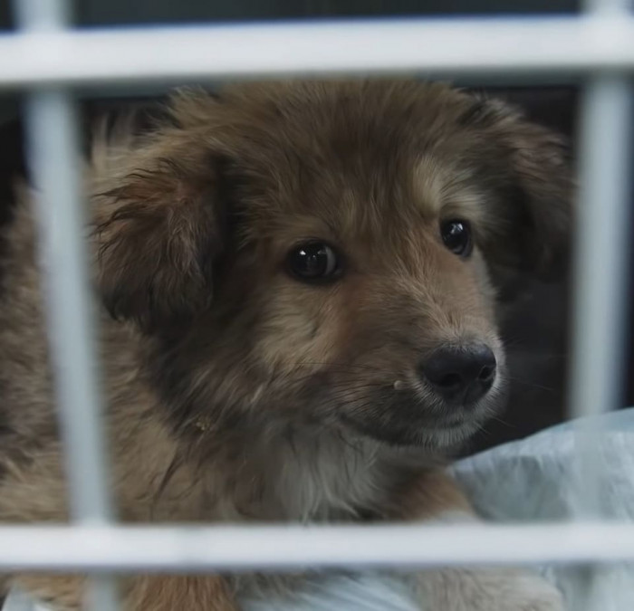 When the rescuers arrived to try to retrieve Pushok, he ran and hid. The poor pup did not realize they were trying to help him.