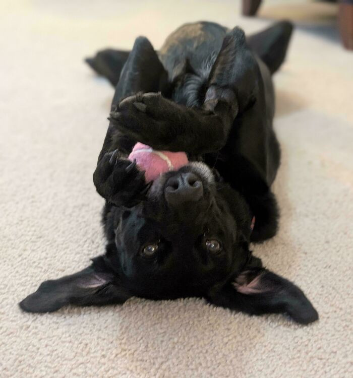 "My Kid Recently Adopted Marley, A Rescue Puppy Who Was Cattle Trained. Yesterday He Herded All His Toys Into An Invisible Corral"