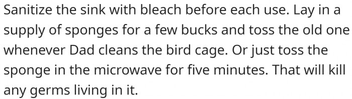 Redditor Complains About Their Dad Washing The Bird’s Bowls In The Kitchen Sink - With A Sponge He Later Uses For Dishes