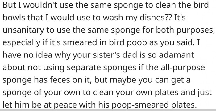 OP's dad uses the same sponge for bird bowls and the dishes.