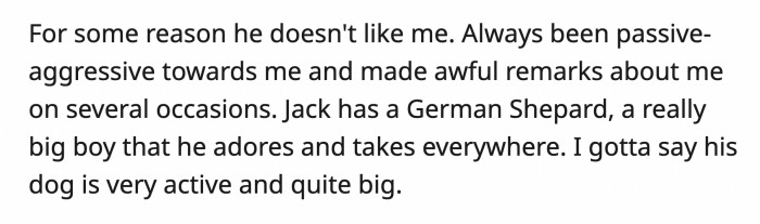 In her defense, OP stated she doesn't hate dogs. She has a Chihuahua of her own who, it turns out, also doesn't like being around Jack's moody dog.