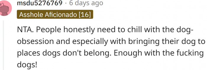 The woman's concern about her husband's dog instigating separation anxiety highlights the psychological complexities surrounding pet ownership. Research in animal behavior psychology indicates that many pets can experience separation anxiety, leading to distress when their owners are away.