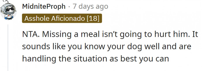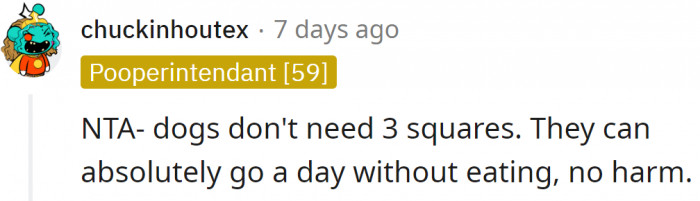"NTA- dogs don't need 3 squares."