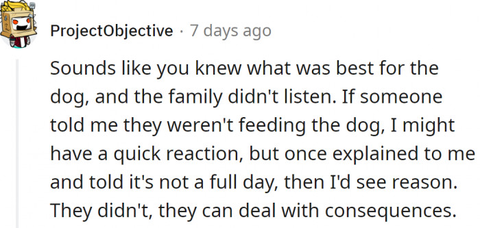 "Sounds like you knew what was best for the dog, and the family didn't listen."