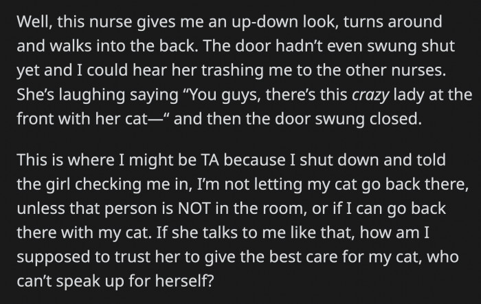 Did OP act like a "crazy cat lady" like the vet tech said? You can read her original post below: