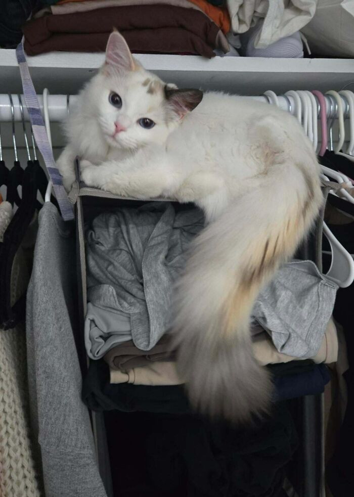 Cats don’t need a reason for what they do, and that’s exactly why we love them. Whether they’re in a box, a hat, or your freshly folded laundry, they make ordinary things entertaining.