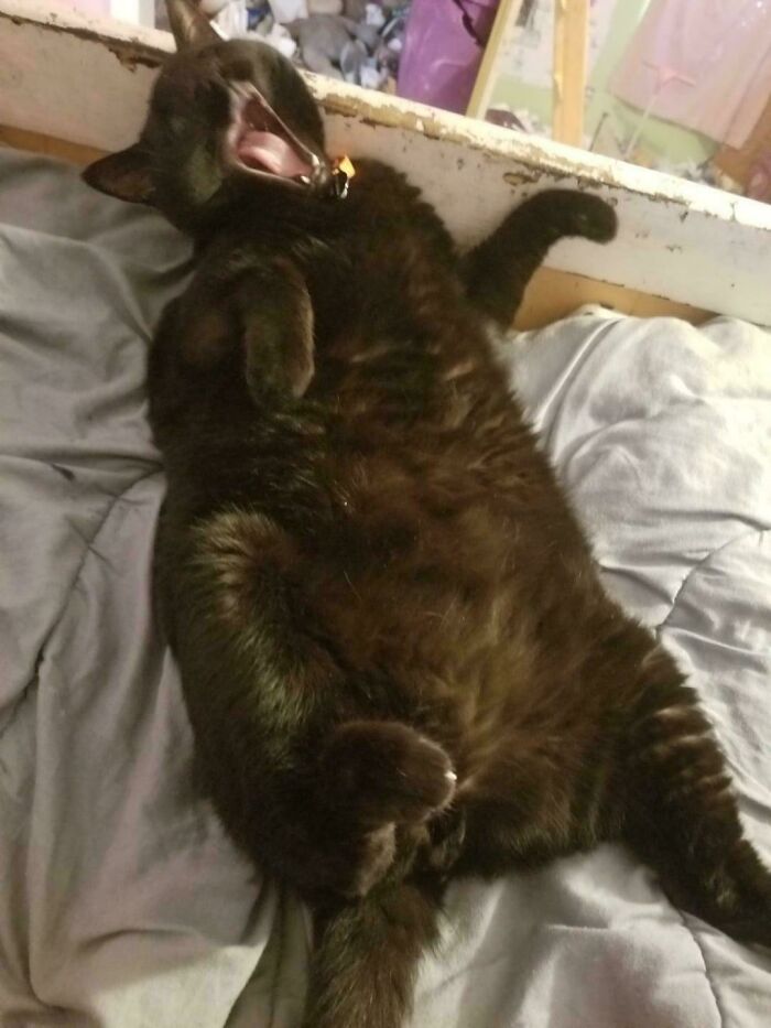" On My 10th Birthday We Went To The Pet Shop To Get Bird Seed Then Saw A Fat Black Cat On Sale For $5, He Was On Sale Cause No One Wanted A Fat Cat.... Best 5 Dollars Spent And Best Birthday Gift Ever!"
