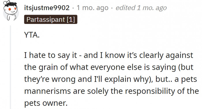 "A pet's mannerisms are solely the responsibility of the pet's owner."