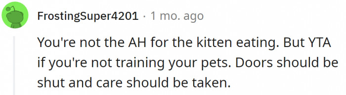 She got mad and threw the poor kitten outside, then told the Redditor that they should be fed more so they won't eat everything they see. Below you can see the whole story.