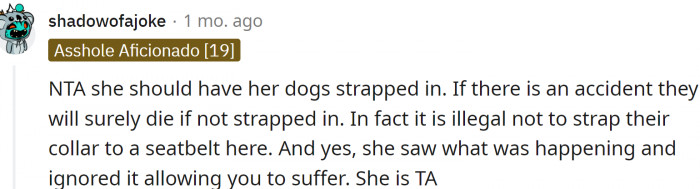 "She should have her dogs strapped in."