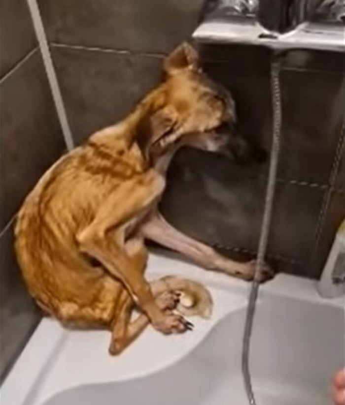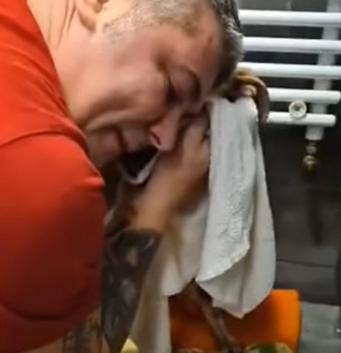 So when Kariola bathed him, he gave the dog lots of kisses and cuddles to assure him that he was safe. Soon enough, as he received more kisses, the dog seemed more at ease.