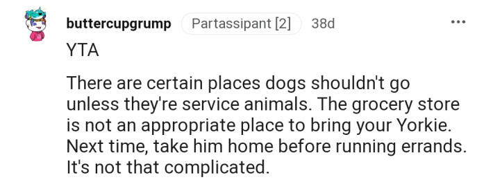 "The grocery store is not an appropriate place to bring your Yorkie."