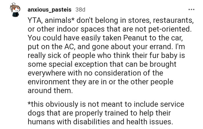 OP felt uncomfortable and left. However, that incident made her question whether she had been right to take her dog in, so she turned to the court of Reddit for a verdict. Check it out below!