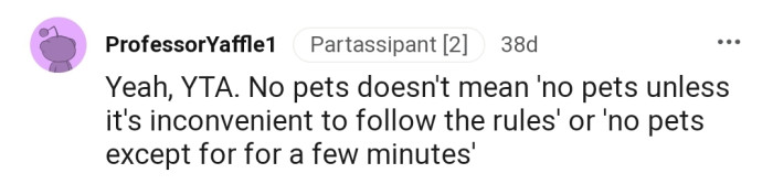 "..'No Pets Allowed' means 'No Pets Allowed'.."