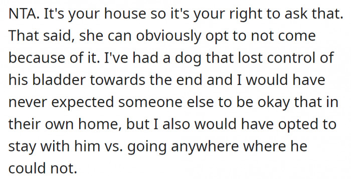 "I've had a dog that lost control of his bladder towards the end, and I would have never expected someone else to be okay with that in their own home."