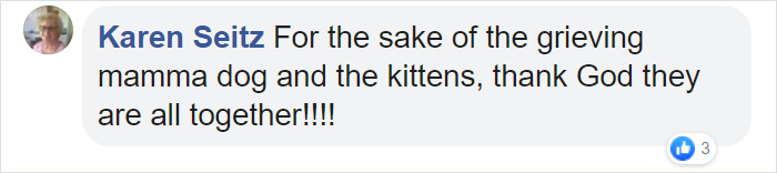 They were happy that both the dog and the kittens were doing great and had recovered from their individual traumas.