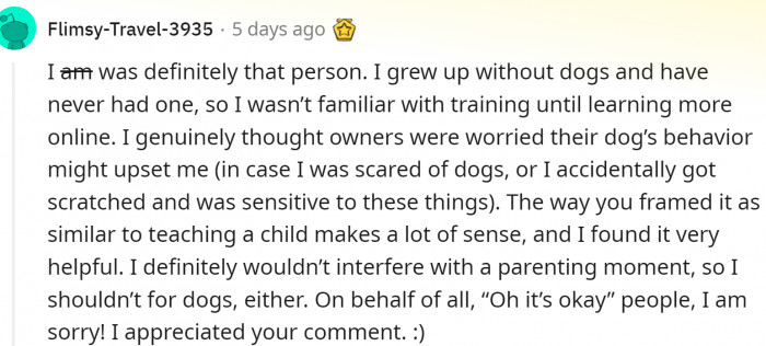 Person Trying To Teach Their Dog Proper Behavior In Public Finally Meets Someone Willing To Respect Their Efforts