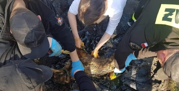 One unlucky dog fell into a tar pit in Suwaki, Poland