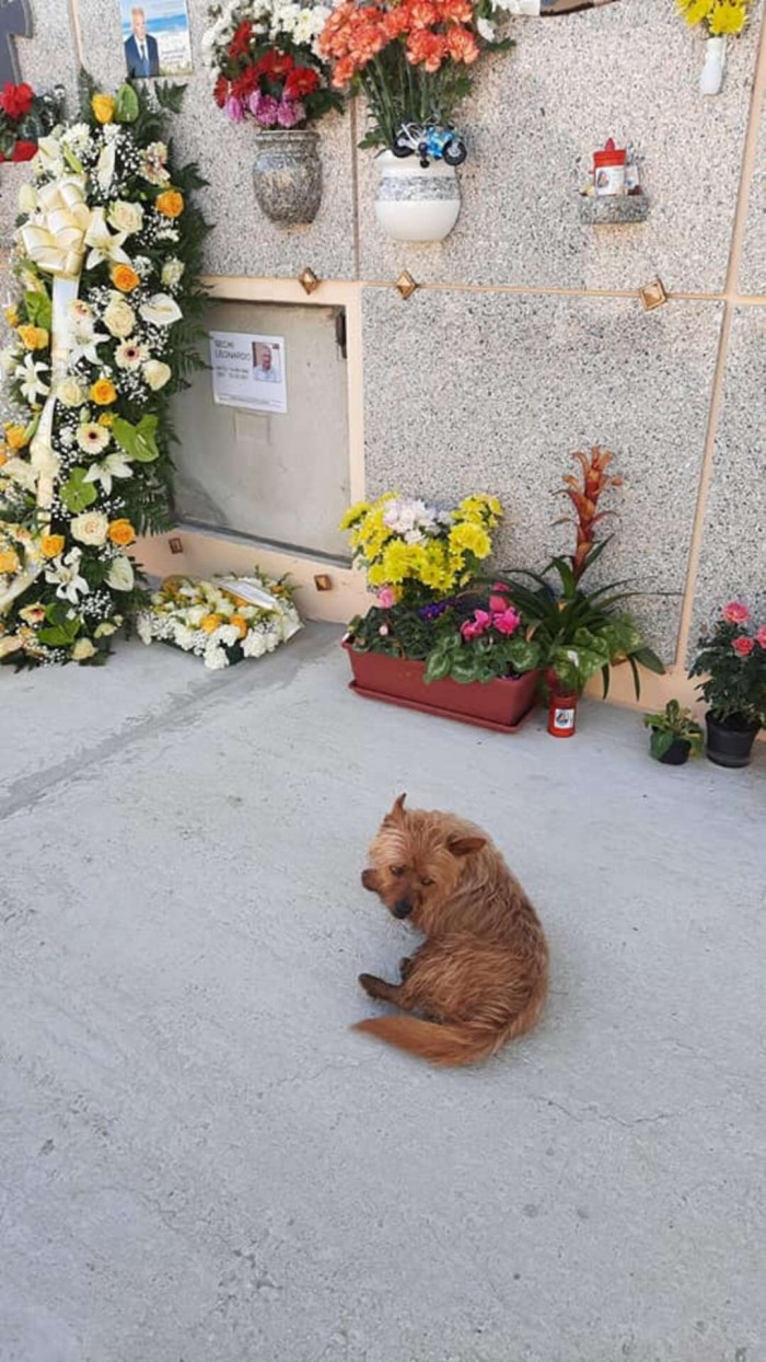 Sechi never expected to find Fulmine there. The little dog wasn't present at the funeral, and she has no idea how he reached the grave.
