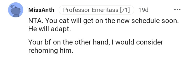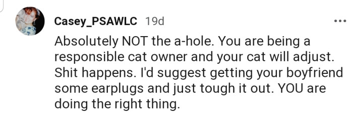 Now OP's boyfriend is blaming them for not being able to put their cat under control