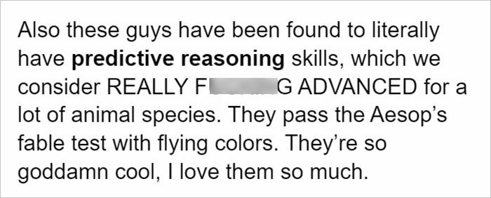 "These birds have been found to possess predictive reasoning skills."