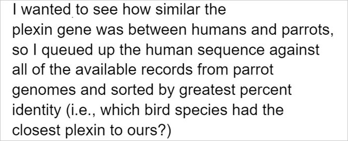 "I wanted to see how similar the Plexin gene was between humans and parrots."