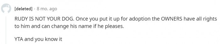 "RUDY IS NOT YOUR DOG. YTA and you know it"