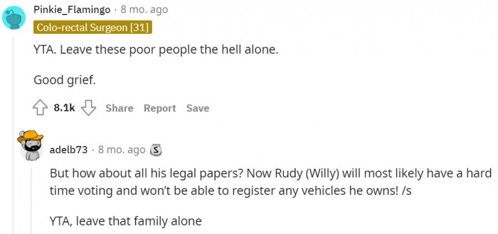 Willy's new family changed his name to Rudy, and now OP (original poster) is furious