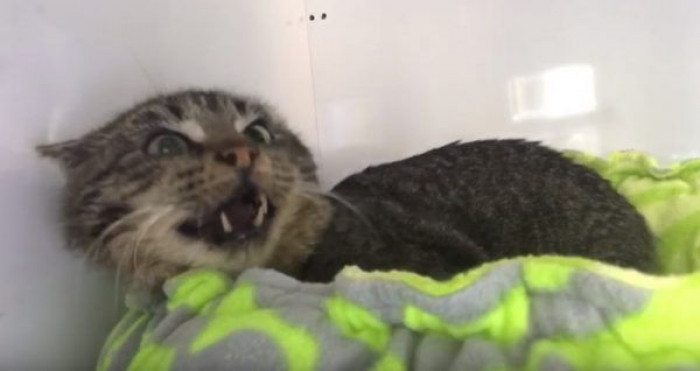 Angry Senior Feral Cat Hates Everyone Until He Meets These Rescue Kittens