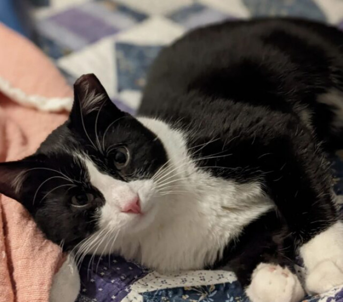 Socks had been captured, spayed, and vaccinated by that time. However, while she was at the veterinary hospital, they discovered a mammary tumor, from which a mass was removed and sent for cancer diagnostics.