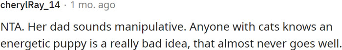 However, when conflict arises over pet-related decisions, as seen in this scenario, it often reflects deeper relational dynamics, including boundaries and priorities within the family unit.