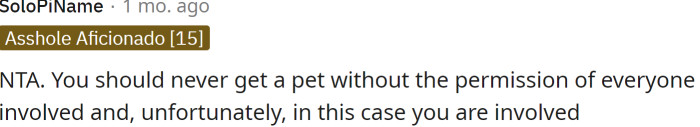 "You should never get a pet without the permission of everyone involved."
