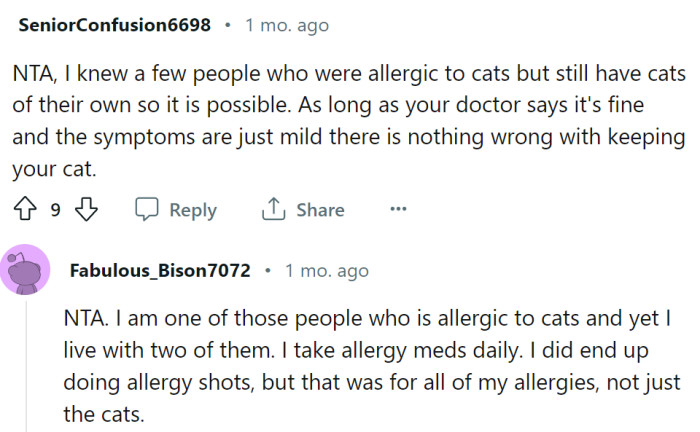Yet, the dilemma took another turn when extended family members weighed in, suggesting that the cat might exacerbate the child's allergies in the future and that relying solely on the doctor's advice might be misguided. They insinuated that keeping the cat might be a selfish act, putting the child's health at potential risk.