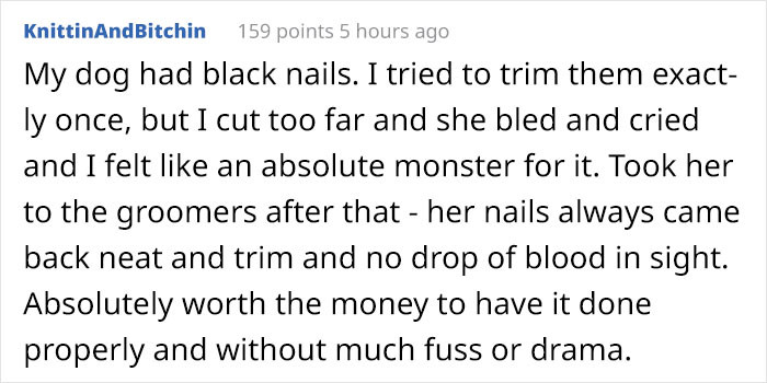 # 2. You don’t bite or scratch your hairdresser. If you did decide to go in for a nibble on your hairdresser while they are at work, you’d quickly find yourself on the sex offender’s register. For pet groomers, however, this is a common occurrence and one of the hazards of the job. A bit of extra ‘danger’ money to take these risks into consideration is more than understandable, if you ask me.