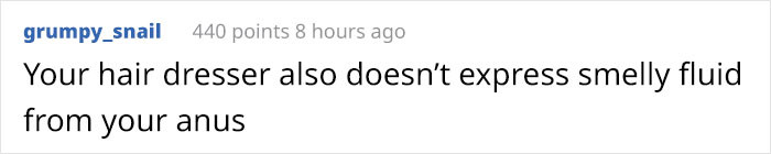 # 1. The likelihood of you pooping on your hairdresser is pretty slim. Your hairdresser assumes that most of their clients would politely excuse themselves if nature were to come calling. Being interrupted on the job may be slightly annoying, particularly if you have a tight schedule to adhere to, but it’s nothing compared to trying to work in close contact with a poopy-pants.