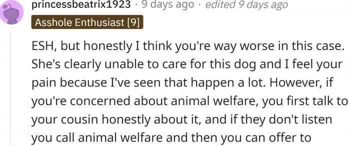 Mental stimulation helps to keep their minds sharp and can reduce separation anxiety and boredom. One Redditor felt that their cousin didn't provide all of this for her dog, so they decided to kidnap it.