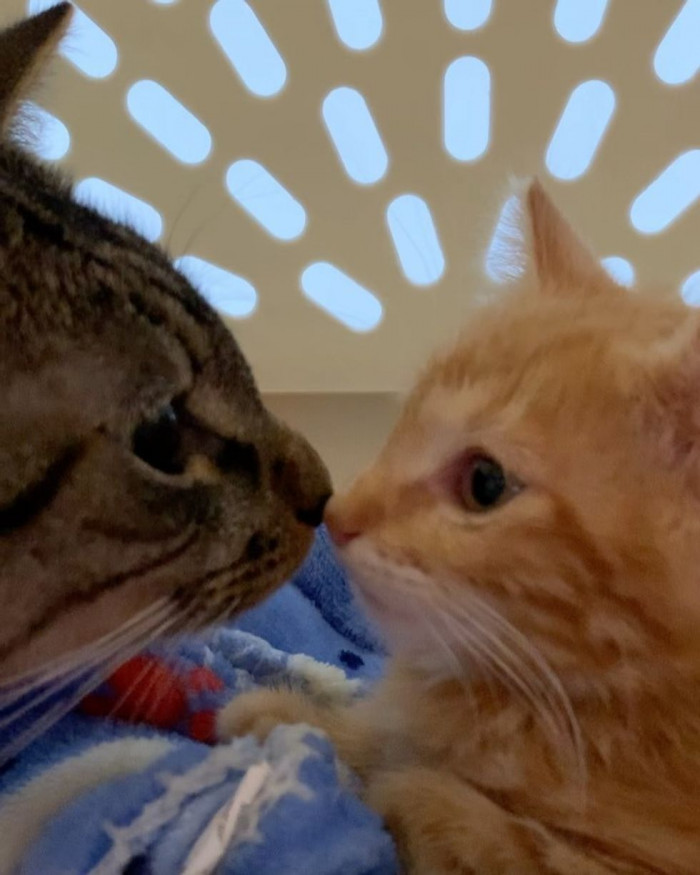 "His mom and dad love him dearly, and he has a new older brother (also a rescued cat). They instantly bonded," Ally said.