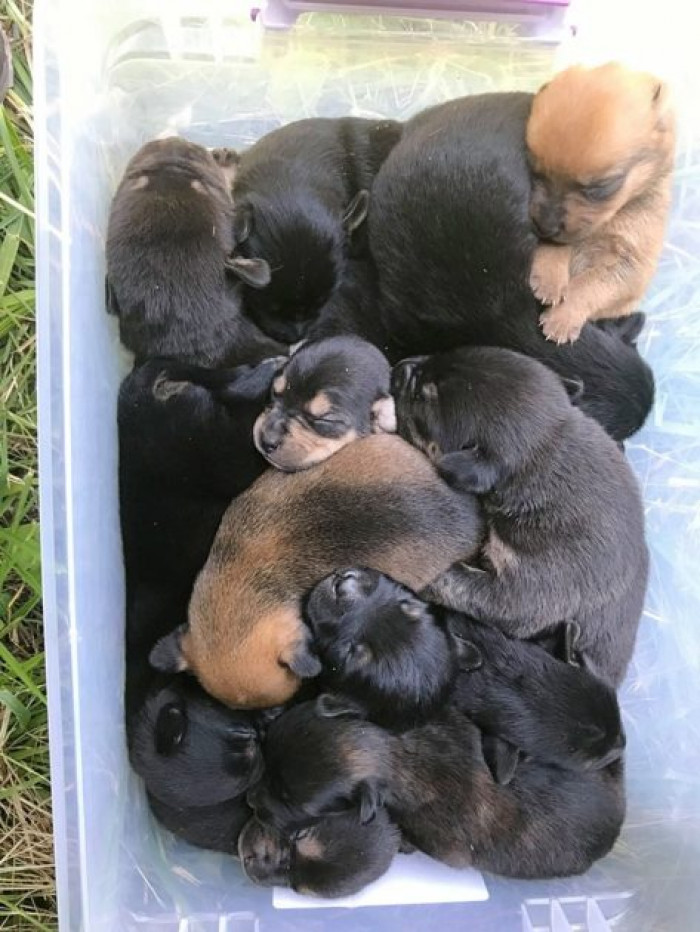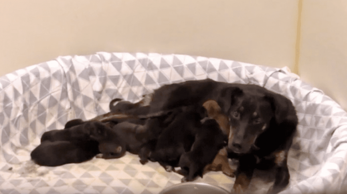 Just take a look at this mother dog in our story today. She gave birth to 13 healthy pups, and she needed to take them to a safer hiding place.