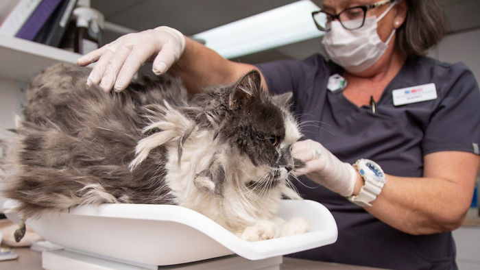 The beautiful 4-year-old cat was restored to her former gray and white glory by the kindhearted people on the AHS team. They removed 2 lbs (or almost a kg) of matted fur from the cat's body!