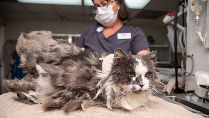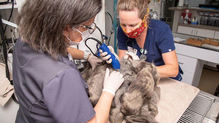 It took around an hour for the team to remove all of Fluffer's matted fur.