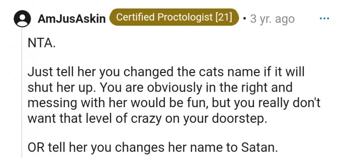 Do you think OP should rename her cat because of her neighbor’s complaints? Let us know in the comments section below!