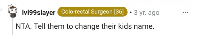 "Tell them to change their daughter's name if it's such a big deal to them"