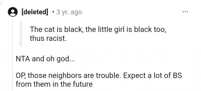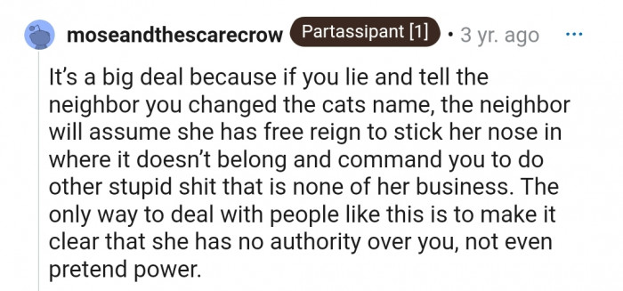 The Reddit community all agrees that OP is NTA, as they believe the name is not racist and it’s not the neighbor's place to dictate what OP should name her cat.