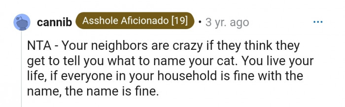 "Your neighbors are crazy if they think they get to tell you what to name your cat"