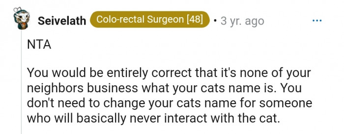 OP further stated that she had no plans to change her cat’s name, leading her to ask the very critical question of AITA.
