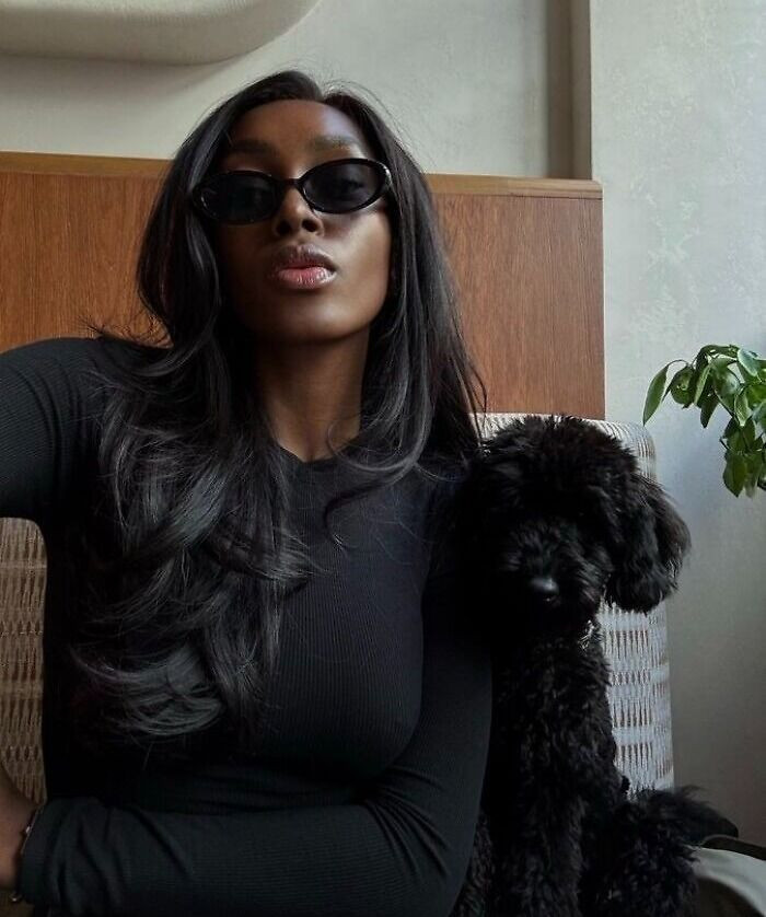 "When Your Hair Colour And Eyes Match That Of Your Pet"