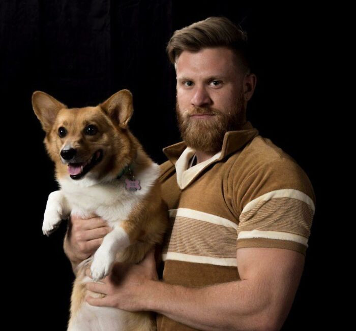 "Bought This Vintage Shirt As A Prop For A Job At Work. Realized It Matched My Beard, Which Also Matches My Dog. Had To Have A Photo Shoot"