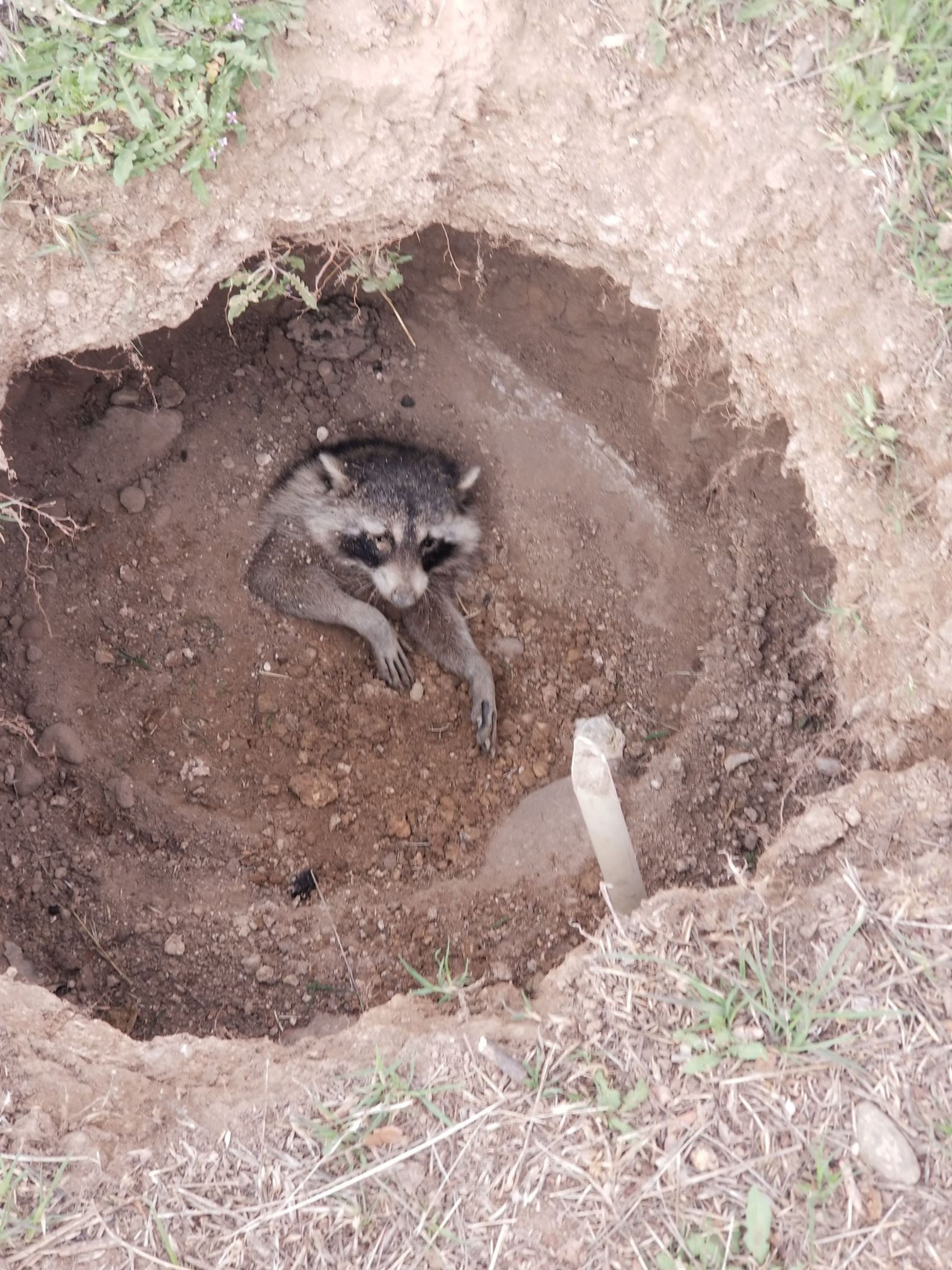 “They spotted a raccoon about 2 to 3 feet down in the hole. Only its head and front legs were exposed. The boys immediately called me and told me what they had found.”