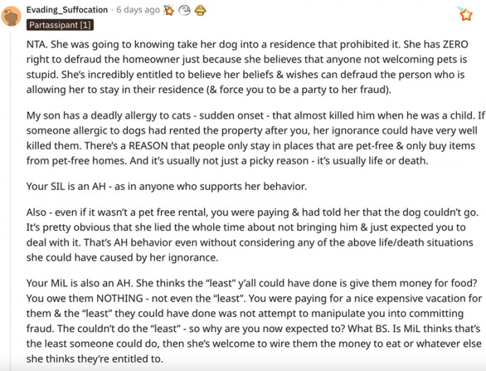 Although we're confident that you already know that, this week we came across a situation on Reddit where someone didn’t. The individual in question is the sister-in-law of the OP, who was informed in advance that the Airbnb they would be staying in would not permit pets.